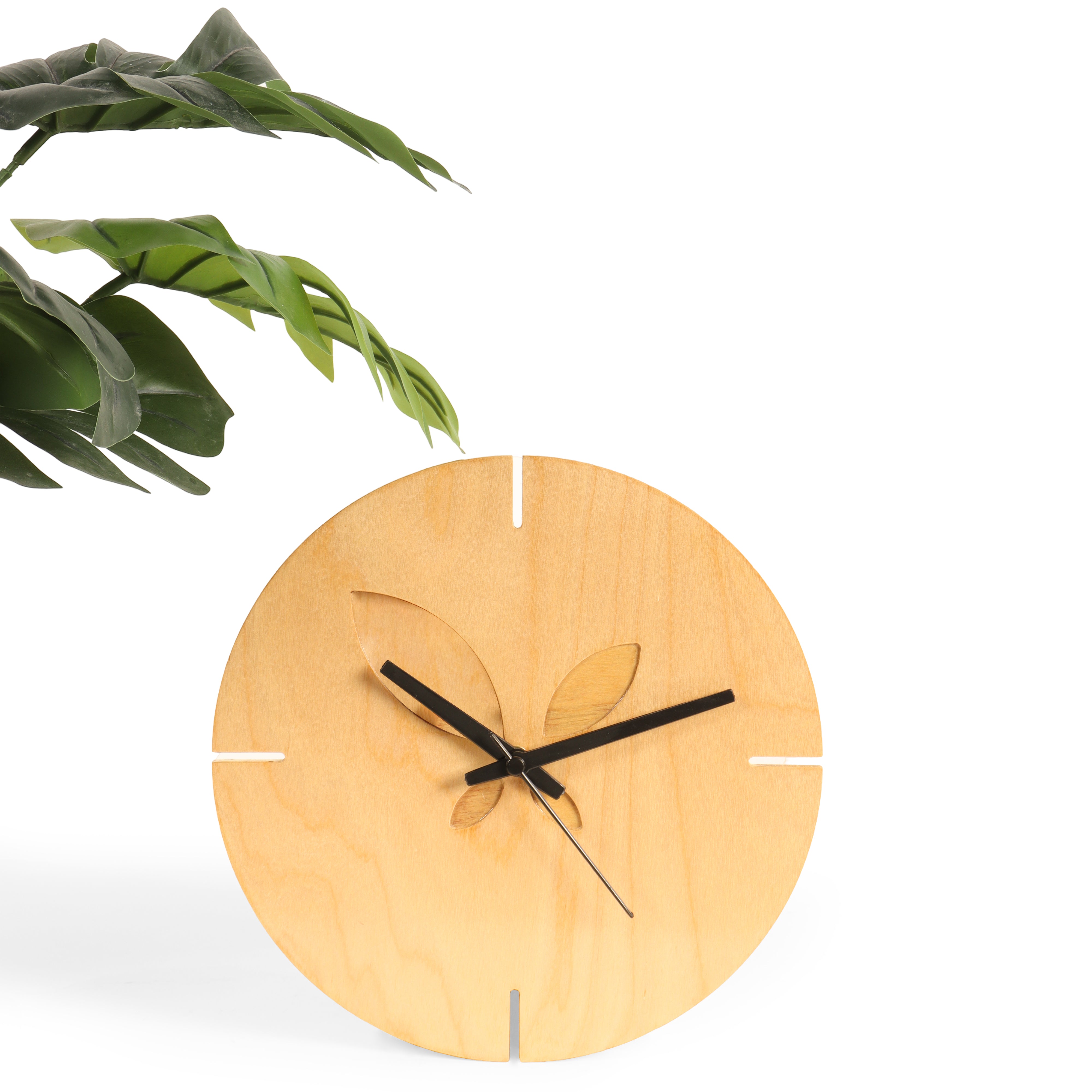 Add a touch of whimsy to your space with this circular wall clock. Crafted from birchwood, it features a unique butterfly cutout design that adds a playful element.