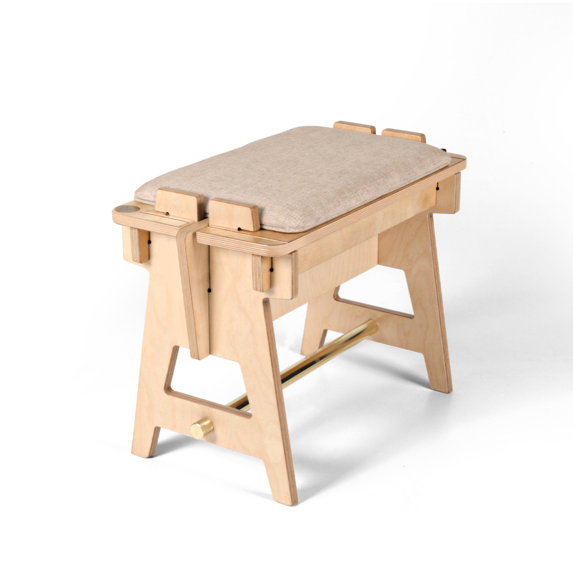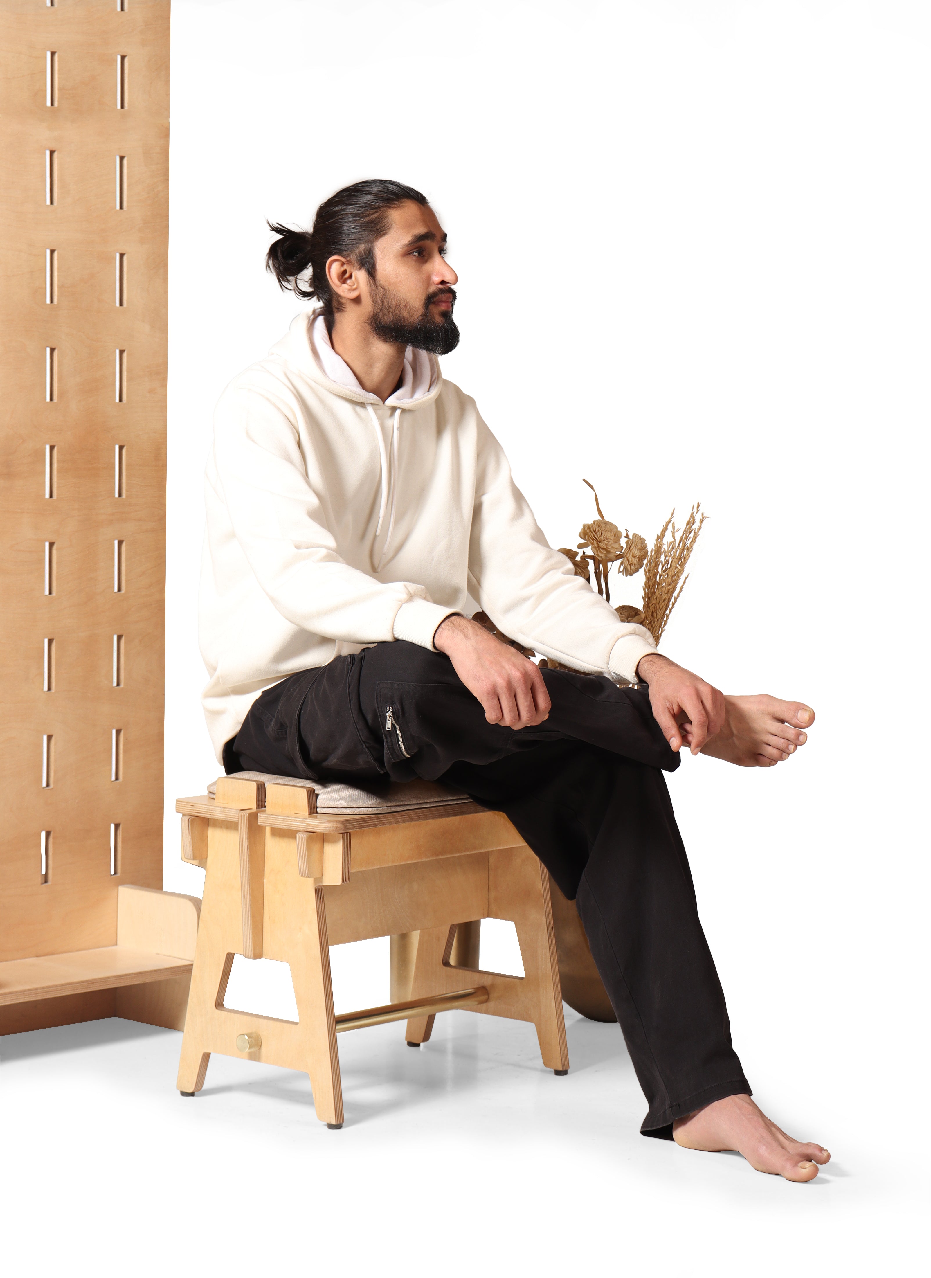 Ekam is digitally fabricated and hand finished piece in CARB certified Birchwood, with extremely comfortable upholstered detachable cushion. It has the perfect base and height to sit and relax, use it as an ottoman or a side table. The structural design is inspired by Japanese architecture fused Scandinavian principles. The stool comes flat packed and can be assembled in just a few minutes, without any additional hardware or tools. The brass rod adds up to the elegance of this stool. Ekam is the piece of furniture where Kaalzua started its journey, and has gone through multiple transformations to finally attain its most stable avatar.