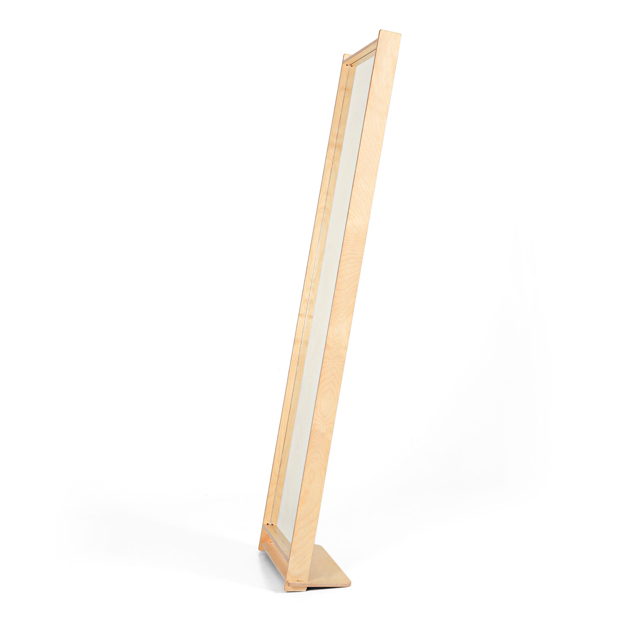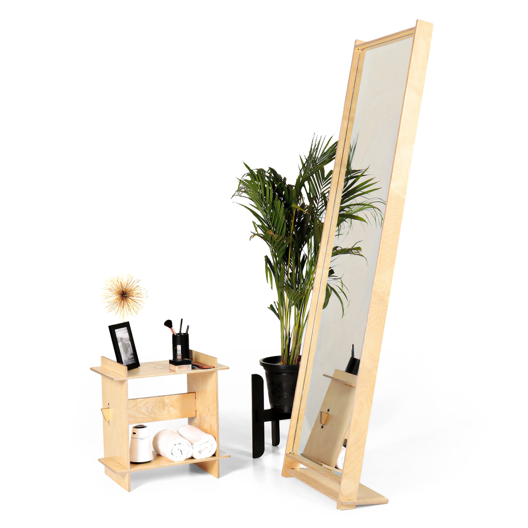 Hansha is a long mirror that comes in both hanging and standing format. This mirror has a sleek look and hardly occupies much space. This slim profile of the mirror adds a visually lightness of this piece