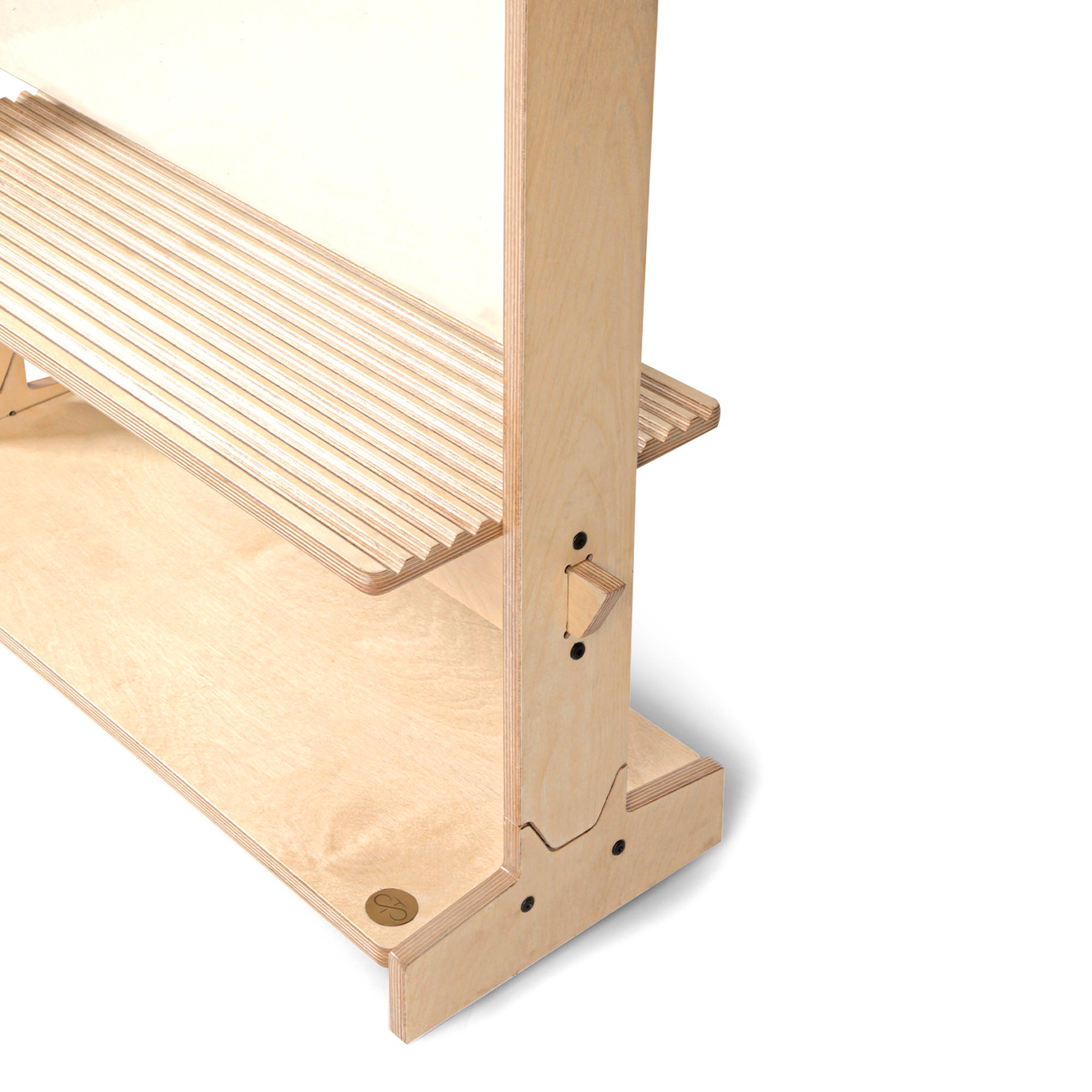 Kasa is a digitally fabricated and hand finished piece in CARB certified Birchwood, with double-sided dry erase board. Heavy duty caster wheels allow Kasa to be extremely mobile and move into different spaces easily. The shelves at the bottom add up the utility space and accommodate stationery and knick knacks. The partition comes in flat packed and can be assembled in just minutes.
