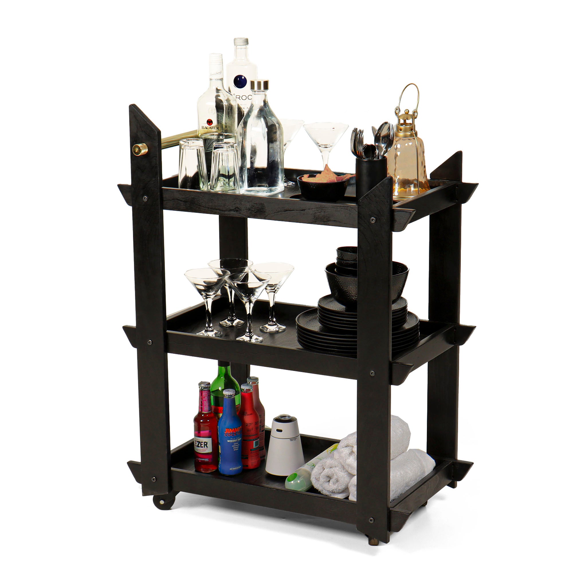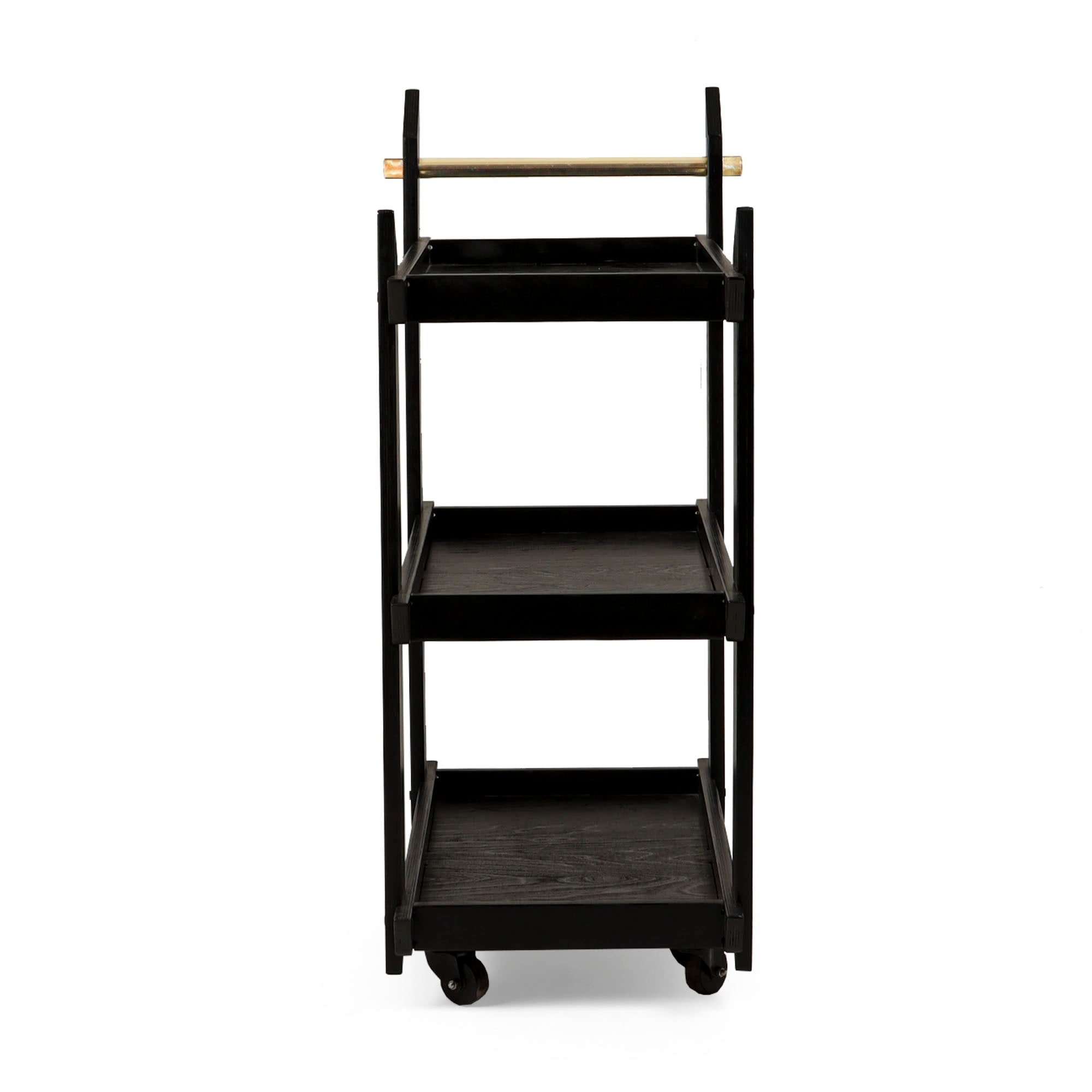 This tea trolley is designed from the high-grade CARB certified birch wood. The piece comes in flat pack format. This means that now you can assemble or disassemble the piece in just minutes. The trolley has three levels with enough space in between that enables you to keep tall kettles or bottles. The trolley comes with a brass rod that both accentuates the look and gives good grip. The wheels attached to the trolley are sturdy and promise longevity. Simple in design, this structure is very stable.