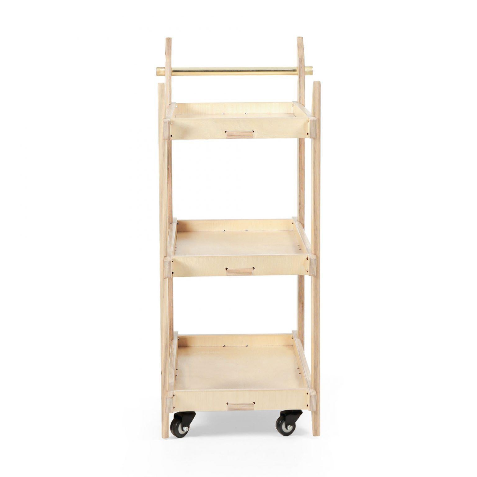 Box contents: Tea trolley, 1 brass rod with 2 brass knobs and an assembly kit.