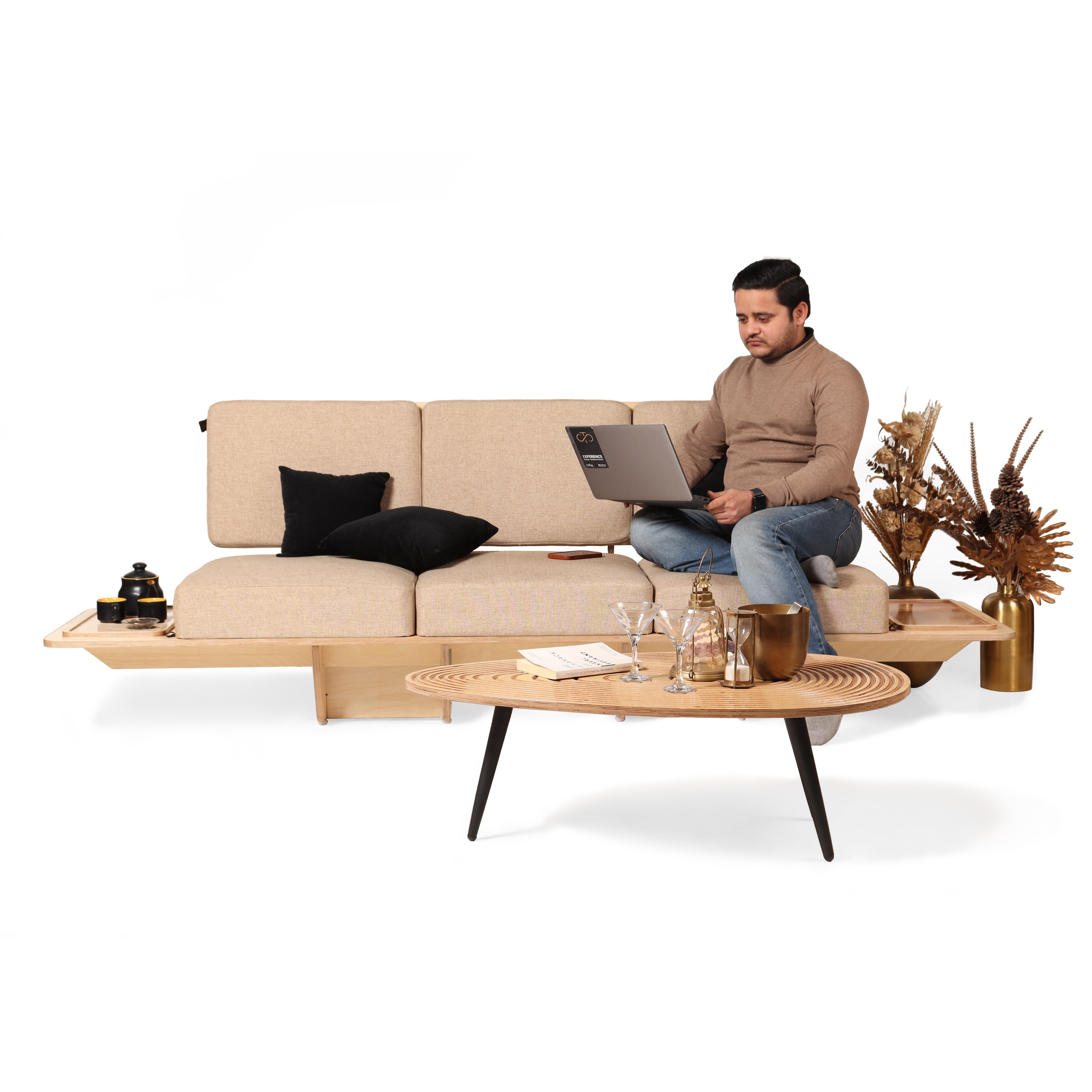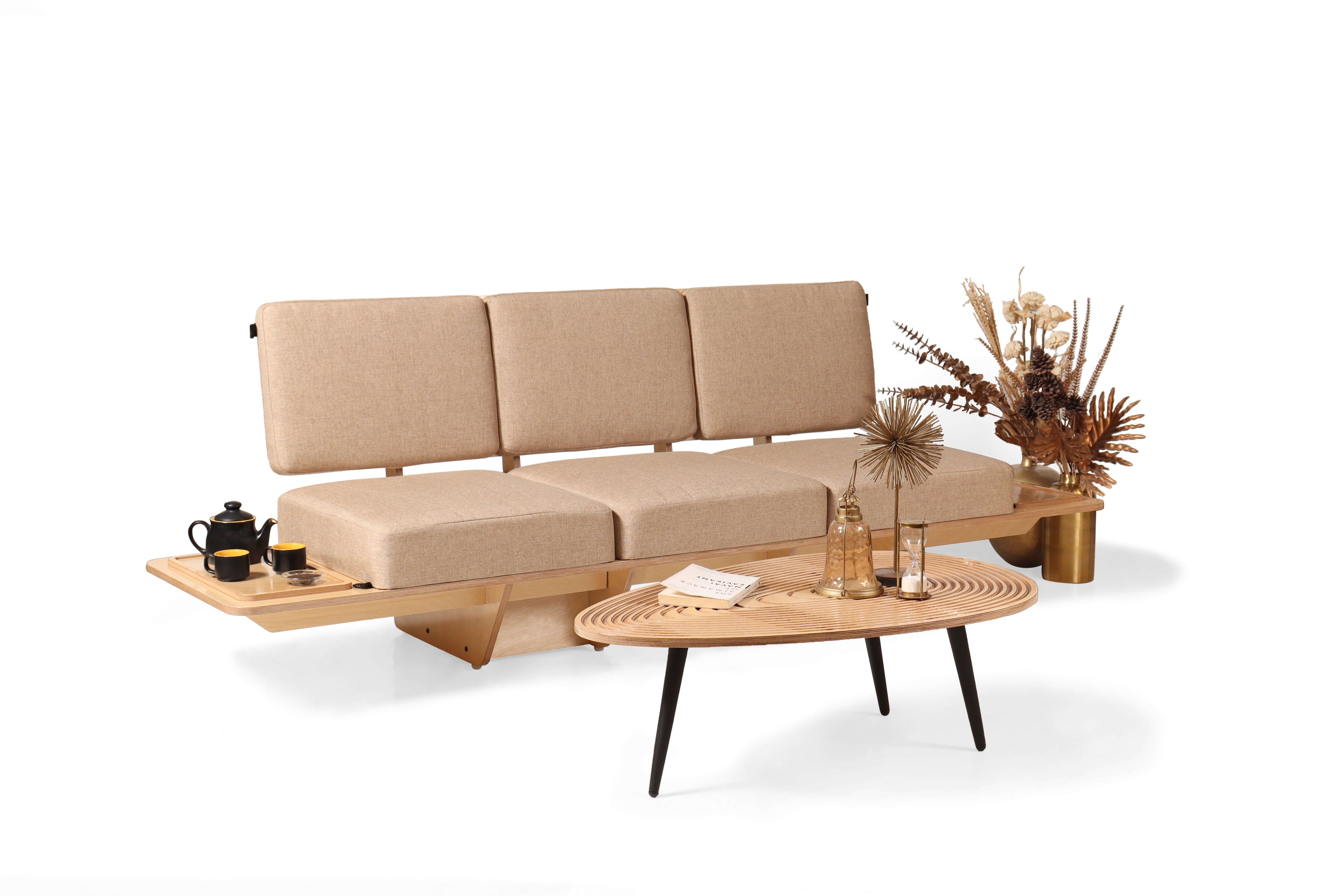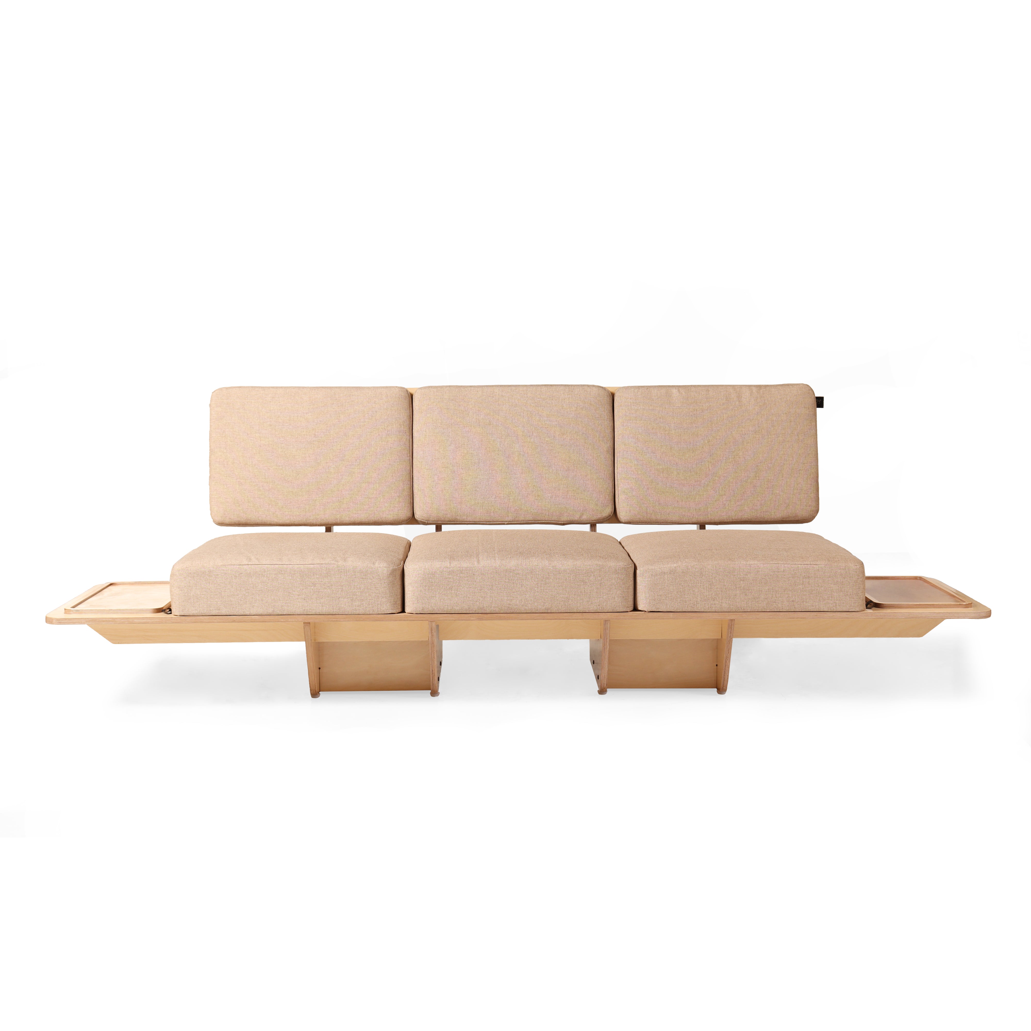 Introducing the Sengai Three-Seater Sofa, a harmonious blend of innovative design and unparalleled comfort. Crafted with meticulous attention to detail, this sofa boasts a sleek cantilevered design that adds a modern flair to any living space. The detachable tray, crafted from premium Russian birch wood, offers both functionality and style, allowing you to customize your seating experience effortlessly. Sink into the sumptuous soft cushioning, meticulously designed to provide the utmost comfort and support. Whether you're lounging with loved ones or unwinding after a long day, the Sengai Three-Seater Sofa promises to elevate your relaxation experience to new heights. Redefine your home aesthetic with this exquisite piece that seamlessly combines form, function, and luxury.