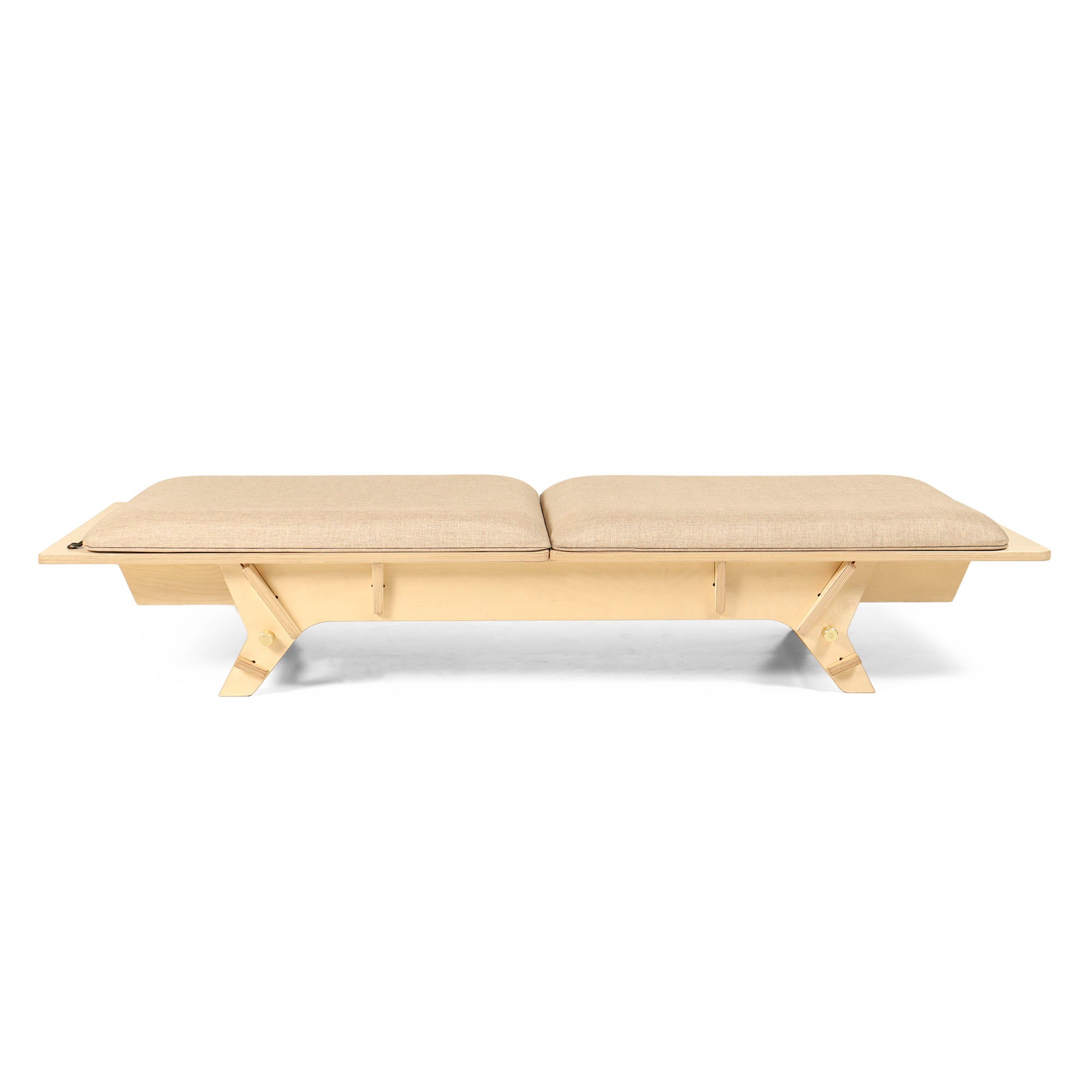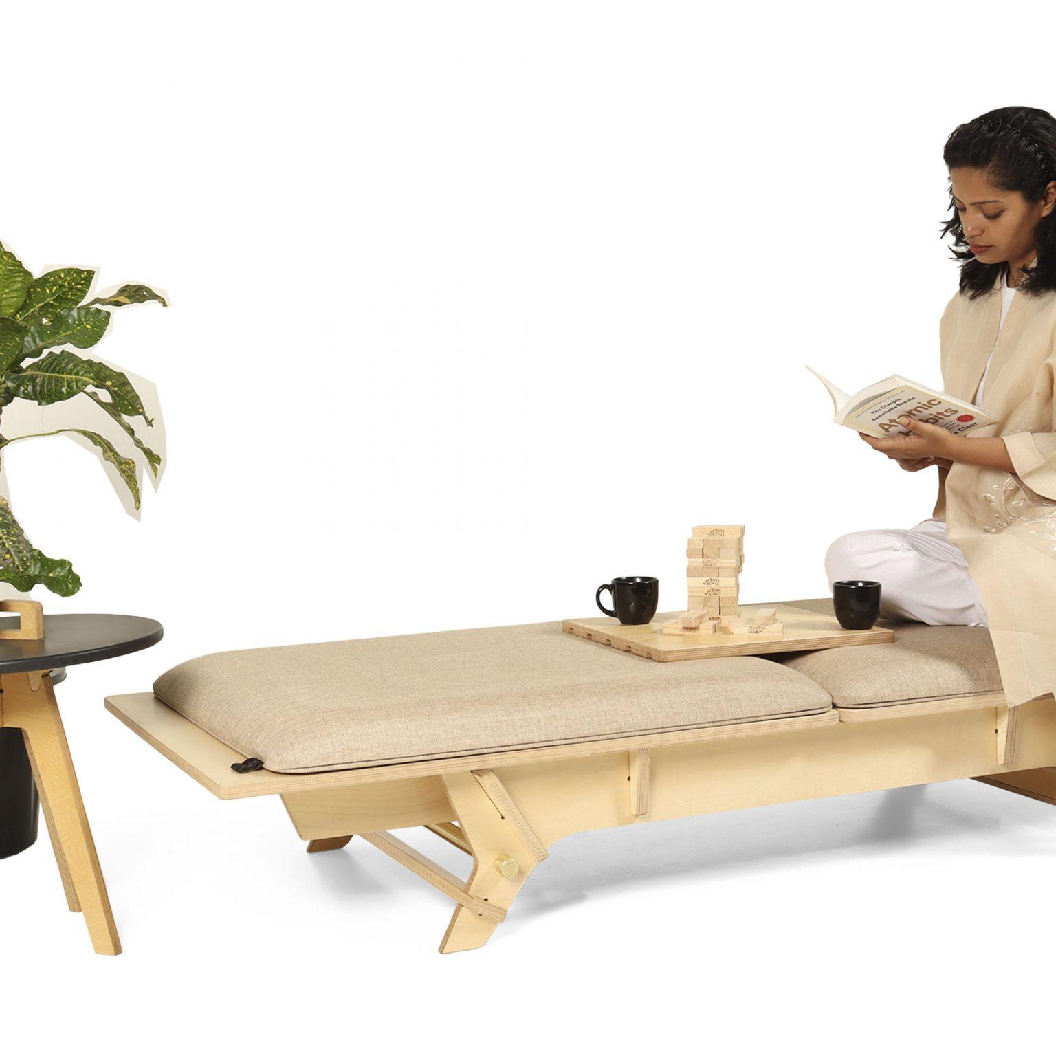Varu is a multipurpose day bed. This piece of furniture can be used as a free-standing chaise lounge or a single bed. The sleek design aesthetics of this furnishing is bound to elevate the overall mood of the living room.
