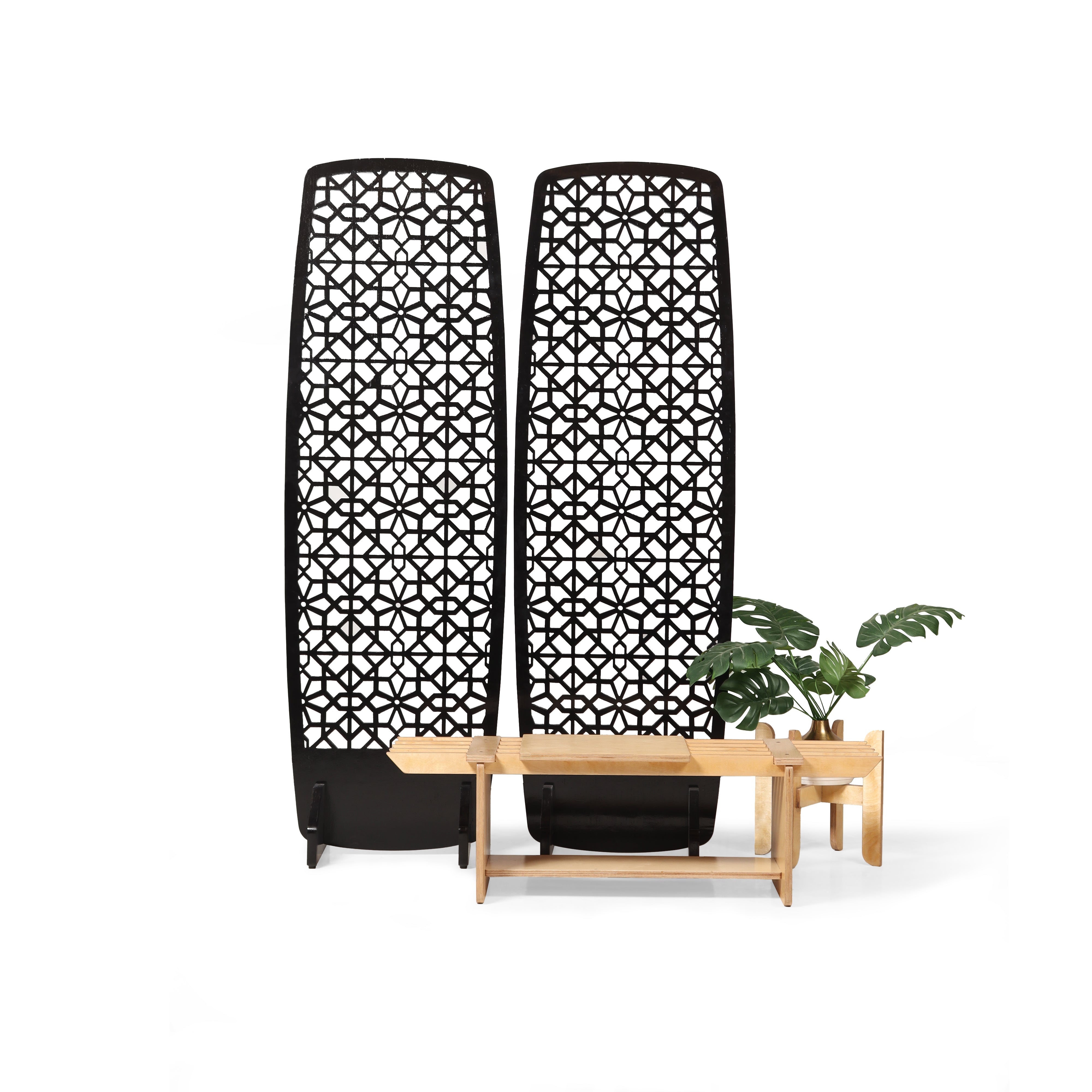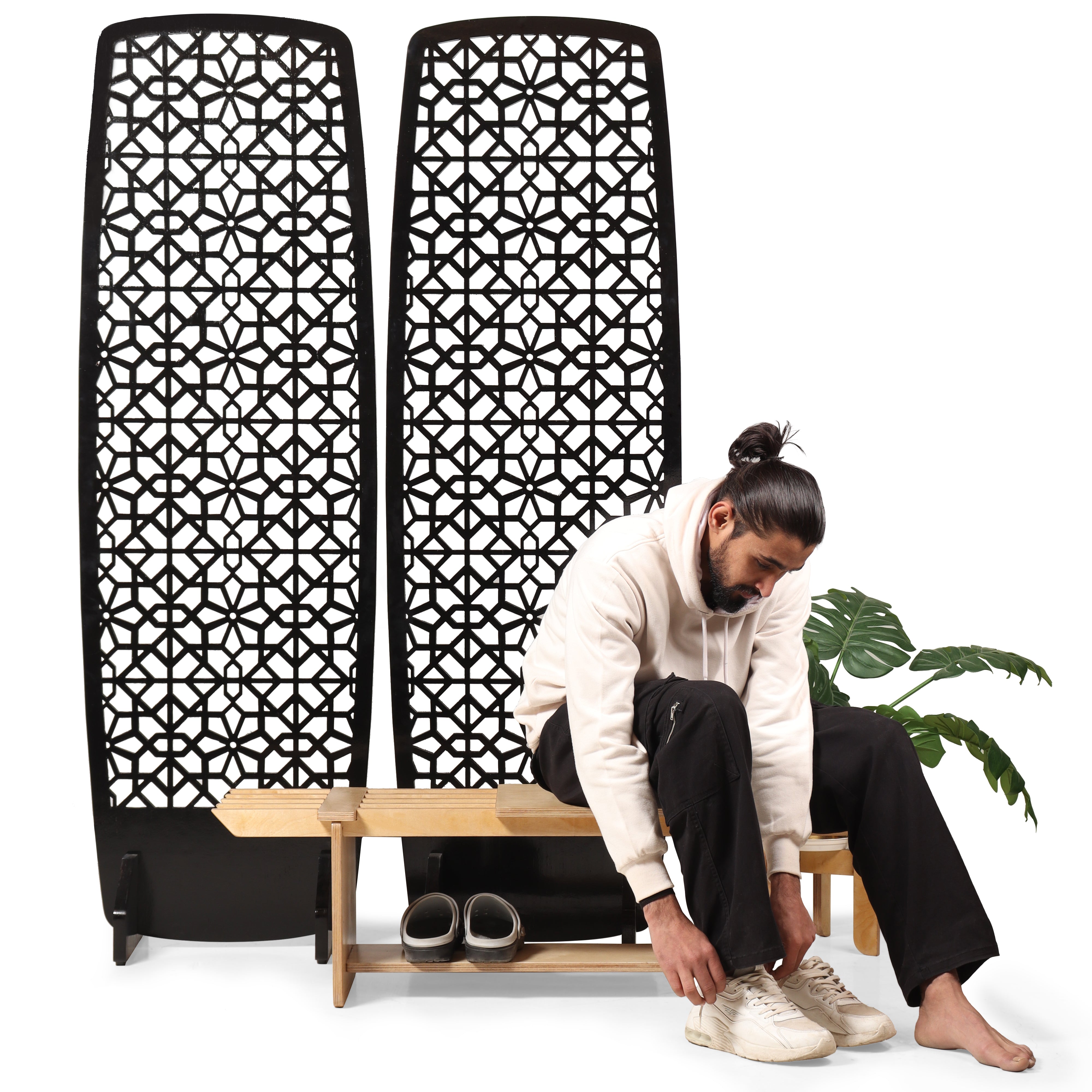 Breathe new life and functionality into your living space with the Zan Wooden Jaali Screen. This beautiful 6-foot divider features a single, intricate Jaali pattern, crafted from solid Birchwood for lasting durability. Available in a variety of stunning designs, the Zan Jaali Screen seamlessly blends minimalist style with Indian artistry. This versatile screen allows you to effortlessly create dedicated areas within your room, promoting a lively and dynamic atmosphere. Whether you need to separate your workspace, create a play area, or simply add a touch of vibrancy, the Zan Jaali Screen is the perfect solution.